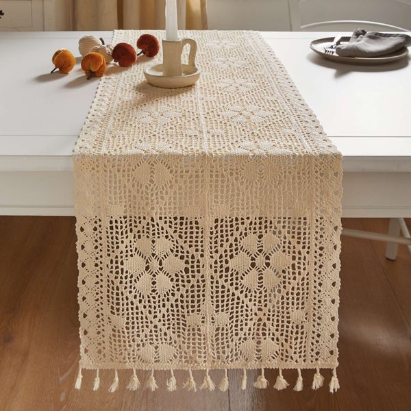 FRANK FLECHTWAREN | Tischläufer Häkelblumen, POLYESTER, BAUMWOLLE, 40 x 140 cm