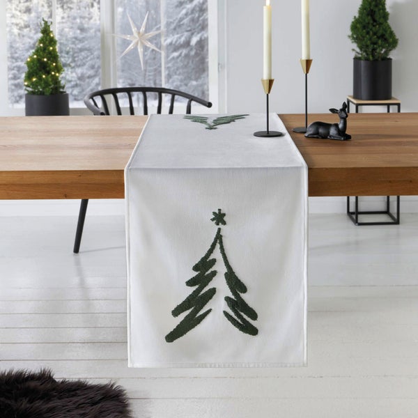 FRANK FLECHTWAREN | Tischläufer Tannenbaum, POLYESTER , 40 x 140 cm