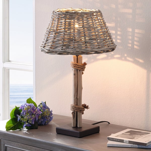 FRANK FLECHTWAREN | Tischleuchte Treibholz-Charme, HOLZ, ca. Ø 30 x 47 cm, Zuleitung 200 cm inkl. An-/Aus-Schalter, geeignet für Leuchtmittel bis max. 60 Wat