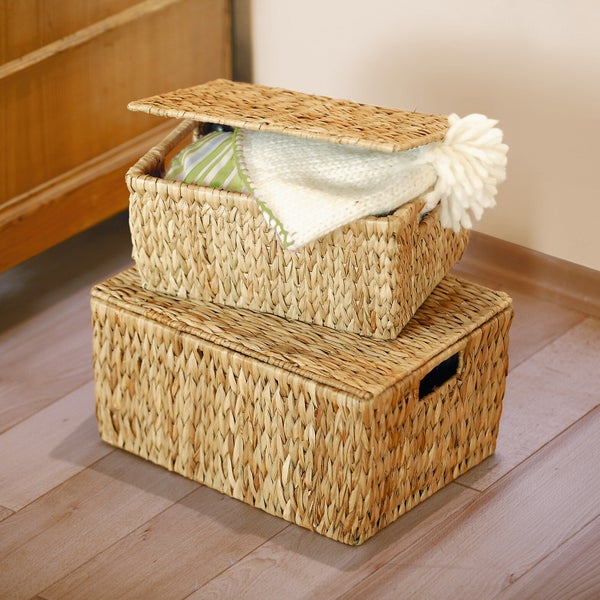 FRANK FLECHTWAREN | Universaltruhe, groß, METALL, WASSERHYAZINTHE, 35 x 25 x 17 cm