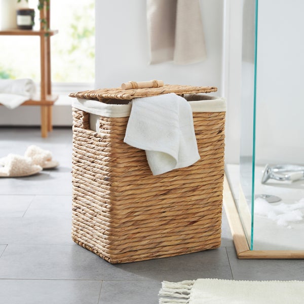 FRANK FLECHTWAREN | Wäschekorb Wasserhyazinthe, WASSERHYAZINTHE, BAUMWOLLE, 34 x 26 x 41 cm, GH 45 cm
