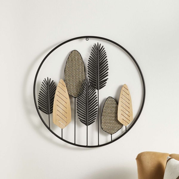FRANK FLECHTWAREN | Wanddeko Blättermix, 56 x 2 x 56 cm, METALL, HOLZ