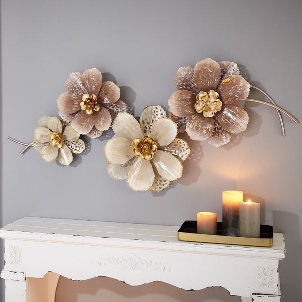 FRANK FLECHTWAREN | Wanddeko Blumen, METALL, 112 x 11 x 52 cm