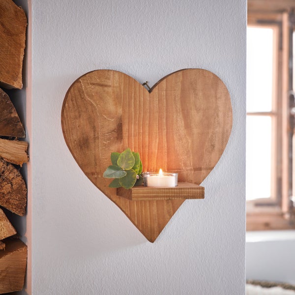 FRANK FLECHTWAREN | Wanddeko Herz-Licht, HOLZ, GLAS, 25 x 9 x 25 cm