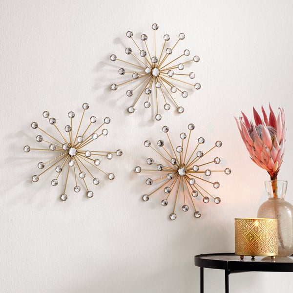 FRANK FLECHTWAREN | Wanddeko Kristallblüte, 3er Set, METALL, Ø 25 cm