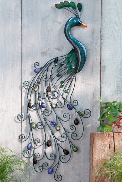 FRANK FLECHTWAREN | Wandhänger Pfau, METALL, 38 x 92 cm