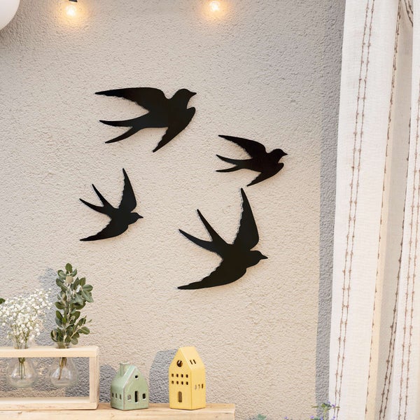 FRANK FLECHTWAREN | Wandhänger Vögel, 4er Set, METALL, 16 x 0,5 x 13 cm, 23,5 x 0,5 x 18 cm, 15 x 0,5 x 18,5 cm, 19,5 x 0,5 x 27 cm
