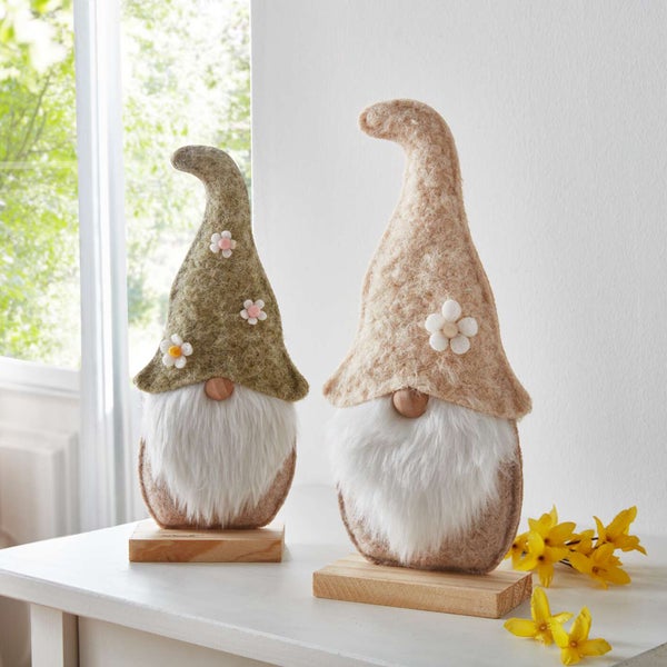 FRANK FLECHTWAREN | Wichtel Zottelbart, 2er Set, FILZ AUS PET, HOLZ, POLYESTER, 12 x 6 x 28 cm, 13,5 x 6 x 30,5 cm