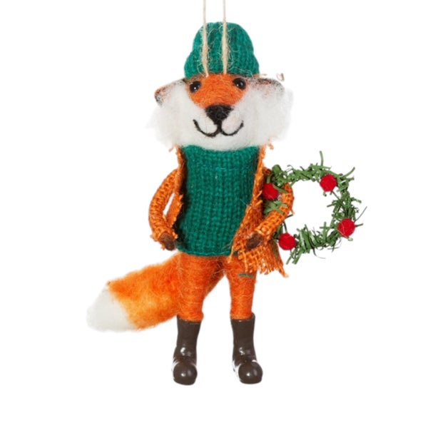 Fuchs mit Kranz Filz Weihnachthänger - Sass & Belle