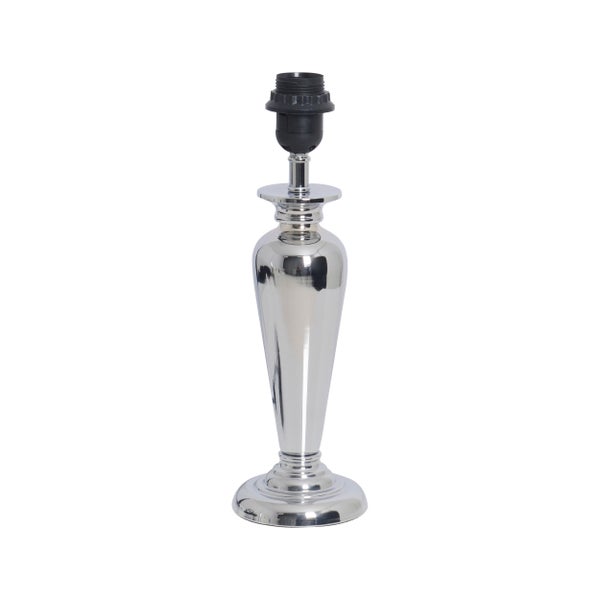 Fuß-Tischleuchte Fukrum - Mit E27 Fassung - der Leuchtenfuß für individuelle Beleuchtungslösungen Gestalten Sie Ihre persönliche Leuchte ganz nach Ihren Vorstellungen. Wählen Sie Fuß und Schirm individuell aus und komplettieren Sie Ihre Einrichtung auf stimmige Art und Weise. Der chromfarbene Leuchtenfuß aus Metall und Kunststoff ist vielseitig einsetzbar und lässt sich mit dem entsprechenden Schirm perfekt an Ihren Wohnstil anpassen. Der Classic Style des abgerundet und eleganten Fußes passt zu vielen Einrichtungsstilen, entweder ergänzend, oder auch als Kontrast. Der Fuß misst 11 cm mal 11 cm und ist 35,5 cm hoch. Der Fuß wird über einen Netzanschluss mit Strom versorgt. Die Lampenfuß hat einen Euro-Flachstecker und eine Zuleitung mit einer Länge von 160 cm. Der Leuchtenfuß wird ohne Leuchtmittel geliefert, so können Sie das Leuchtmittel nach Ihren Wünschen und Bedürfnissen auswählen.