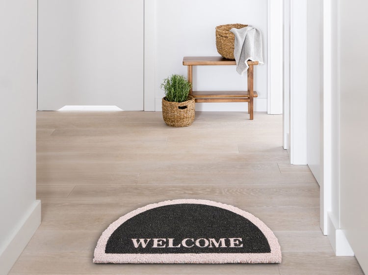 Fußmatte für den Innenbereich mit rutschfester Rückseite. Verleihen Sie Ihrem Eingangsbereich mit dieser klassischen Fußmatte mit dem Aufdruck „Welcome“ Funktionalität. Sie ist aus strapazierfähiger Kokosfaser gefertigt, die effektiv Schmutz von Schuhen entfernt, sodass Ihr Boden makellos bleibt. Die rutschfeste Rückseite sorgt für einen sicheren Halt und die halbrunde Form macht sie zur perfekten Ergänzung für jede Eingangstür. Details: Typ Fußmatte. Stil: Klassisch. Farbe: Schwarz. Farbton: Hellbeige. Material: Stoff. Material: Kokosfasern. Rückseitenmaterial: PVC. Zusammenstellung: 100% Kokosfaser. Form: Halbrund. Rutschfeste Unterseite: Ja. Muster: Mit Aufschrift. Herstellungsmethode: Getuftet. Abmessungen: Florhöhe: 1.25 cm. Breite: 45 cm. Länge: 75 cm. Gewicht: 2 kg. .Sie kaufen: 1 x Fußmatte. Produktvorteile: Besonders sicher dank rutschfester Unterseite, Zeitloses Design, Dekorativ und zugleich funktional, Hochwertiges Material, Besonders pflegeleicht. Montage: Benötigt keine Montage. Pflegeanleitung: Kokosfasern: Regelmäßig ausschütteln, um abgelagerten Schmutz zu entfernen. Für eine gründlichere Reinigung kann die Matte mit einem Staubsauger gereinigt werden. Um die Qualität und das Aussehen der Naturfasern zu erhalten, sollte die Matte nicht gewaschen werden.