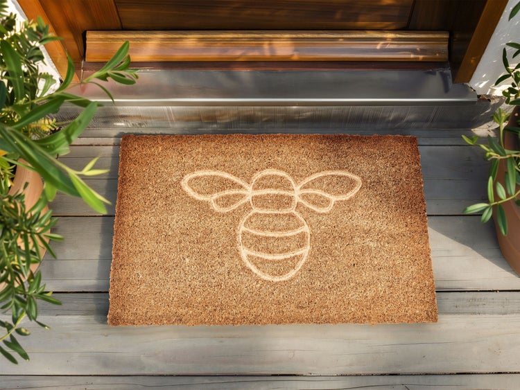 Fußmatte mit Bienenmotiv für den Innenbereich mit rutschfester Unterseite. Verleihen Sie Ihrem Eingangsbereich mit dieser Fußmatte mit Bienenmotiv einen verspielten Touch. Das bezaubernde Motiv ist eine hübsche Ergänzung für Ihr Zuhause, und das Kokosmaterial sorgt für eine lange Lebensdauer. Die Fußmatte ist ideal für den Außenbereich und eine einfache Möglichkeit, Ihr Zuhause sauber und einladend zu halten. Details: Typ Fußmatte. Stil: Modern. Farbe: Naturfarben. Material: Stoff. Material: Kokosfasern. Rückseitenmaterial: PVC. Zusammenstellung: 100% Kokosfaser. Form: Rechteckig. Rutschfeste Unterseite: Ja. Muster: Tiermuster. Herstellungsmethode: Getuftet. Abmessungen: Florhöhe: 1.3 cm. Breite: 60 cm. Länge: 40 cm. Gewicht: 2 kg. .Sie kaufen: 1 x Fußmatte. Produktvorteile: Dekorativ und zugleich funktional, Ein einzigartiger Hingucker, Gemütliche Ausstrahlung, Umweltfreundliche und recycelbare Materialien, Sicher durch rutschfeste Rückseite. Montage: Benötigt keine Montage. Pflegeanleitung: Regelmäßig ausschütteln, um abgelagerten Schmutz zu entfernen. Für eine gründlichere Reinigung kann die Matte mit einem Staubsauger gereinigt werden. Um die Qualität und das Aussehen der Naturfasern zu erhalten, sollte die Matte nicht gewaschen werden.