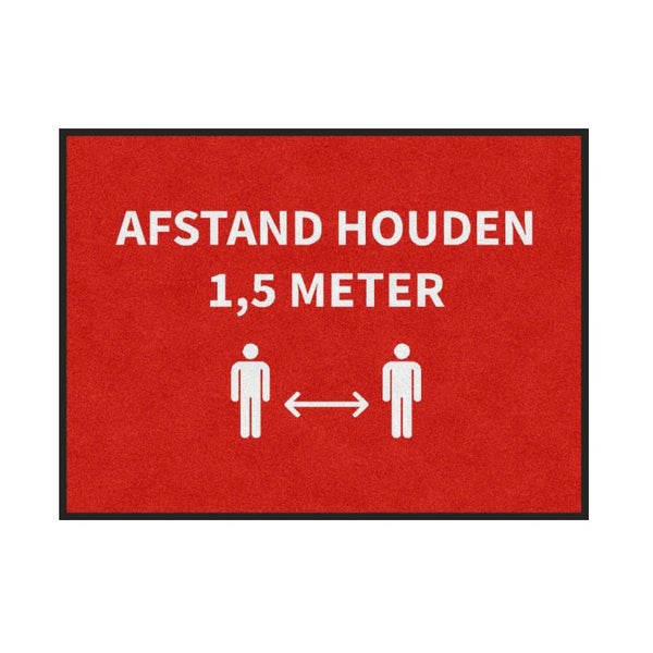 Möchten Sie die Aufmerksamkeit von Besuchern, Kunden oder Gästen auf die anderthalb Meter großen Maße lenken? Diese hochwertig bedruckte Fußmatte eignet sich perfekt als vorübergehender Ersatz für Ihre aktuelle Fußmatte. Bedruckte Fußmatte „Halten Sie Abstand“ 85x115 cm Die Colorstar-Logomatte besteht aus 100 % PET-Polyester mit 900 g/m2. 50 % der Fasern bestehen aus recyceltem Polyester aus PET-Flaschen. Im Vergleich zu Nylon ist dieses Material UV-beständiger, schmutzabweisender und farbechter. Und aufgrund der schweren Qualität des Teppichs bietet er auch eine hervorragende Aufnahme von Feuchtigkeit und Schmutz.