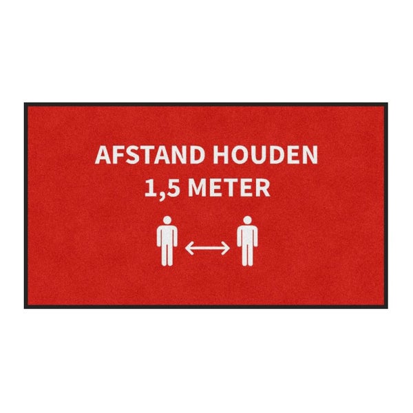 Möchten Sie die Aufmerksamkeit von Besuchern, Kunden oder Gästen auf die anderthalb Meter großen Maße lenken? Diese hochwertig bedruckte Fußmatte eignet sich perfekt als vorübergehender Ersatz für Ihre aktuelle Fußmatte. Bedruckte Fußmatte „Halten Sie Abstand“ 85x150 cm Die Colorstar-Logomatte besteht aus 100 % PET-Polyester mit 900 g/m2. 50 % der Fasern bestehen aus recyceltem Polyester aus PET-Flaschen. Im Vergleich zu Nylon ist dieses Material UV-beständiger, schmutzabweisender und farbechter. Und aufgrund der schweren Qualität des Teppichs bietet er auch eine hervorragende Aufnahme von Feuchtigkeit und Schmutz.