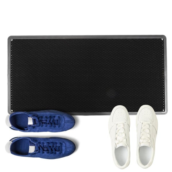 Dieser schwarze Abstreifer in sehr schwerer Qualität ist perfekt für den Außenbereich geeignet! Ob privat vor der Haus- oder Terrassentüre oder dem Balkon oder im geschäftlichen Bereich mit hohem Publikumsaufkommen: viele aneinandergereihte Noppen entfernen groben wie auch feinen Schmutz zuverlässig von Schuh und Stiefel. Selbst bei Schnee und Eis bleibt diese Schmutzfangmatte rutschfest und sicher!
