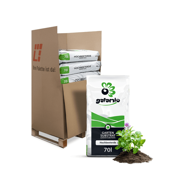 Die GALAMIO® Hochbeeterde wurde speziell für das ökologische Gärtnern entwickelt und bietet die ideale Basis für ein gesundes Pflanzenwachstum. Mit einem hohen Torfanteil, organisch-mineralischen sowie rein organischen Düngern unterstützt sie sowohl das Wurzelsystem als auch die Vitalität Ihrer Pflanzen. Gesiebter Grünschnittkompost sorgt für eine verbesserte Bodenstruktur und eine nachhaltige Nährstoffversorgung, wodurch die Erde nicht nur in Hochbeeten, sondern auch in Gartenbeeten hervorragende Ergebnisse liefert. Die Zusammensetzung aus natürlichen Rohstoffen garantiert eine stabile Struktur, optimale Belüftung der Wurzeln und eine effiziente Wasserableitung. Damit schafft sie die besten Bedingungen für kräftige Pflanzen und reiche Ernten – unabhängig davon, ob Sie Kräuter, Gemüse oder andere Gartenpflanzen anbauen möchten. Die Hochbeeterde ist vielseitig einsetzbar und harmoniert ideal mit anderen Gartenbaustoffen, wodurch sie sich perfekt für verschiedenste Gartenprojekte eignet. Durch die Verwendung von nachhaltig gewonnenen Rohstoffen und die Förderung eines vitalen Bodens trägt diese Erde zu einer ökologischen Gartenpraxis bei. Sie kombinieren effektives Pflanzenwachstum mit einem aktiven Beitrag zum Umweltschutz. Bestellen Sie die GALAMIO® Hochbeeterde ganz bequem und erhalten Sie die Ware direkt nach Hause geliefert. Die Lieferung erfolgt in praktischen 70-Liter-Säcken, die ordentlich auf einer Palette gestapelt sind und per Spedition zuverlässig ankommen. Je nach Bedarf können Sie zwischen 10 oder 30 Säcken pro Palette wählen.