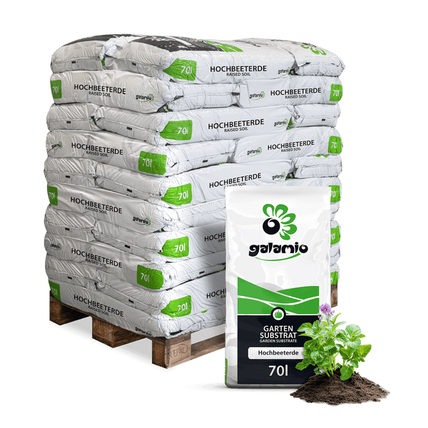 Die GALAMIO® Hochbeeterde wurde speziell für das ökologische Gärtnern entwickelt und bietet die ideale Basis für ein gesundes Pflanzenwachstum. Mit einem hohen Torfanteil, organisch-mineralischen sowie rein organischen Düngern unterstützt sie sowohl das Wurzelsystem als auch die Vitalität Ihrer Pflanzen. Gesiebter Grünschnittkompost sorgt für eine verbesserte Bodenstruktur und eine nachhaltige Nährstoffversorgung, wodurch die Erde nicht nur in Hochbeeten, sondern auch in Gartenbeeten hervorragende Ergebnisse liefert. Die Zusammensetzung aus natürlichen Rohstoffen garantiert eine stabile Struktur, optimale Belüftung der Wurzeln und eine effiziente Wasserableitung. Damit schafft sie die besten Bedingungen für kräftige Pflanzen und reiche Ernten – unabhängig davon, ob Sie Kräuter, Gemüse oder andere Gartenpflanzen anbauen möchten. Die Hochbeeterde ist vielseitig einsetzbar und harmoniert ideal mit anderen Gartenbaustoffen, wodurch sie sich perfekt für verschiedenste Gartenprojekte eignet. Durch die Verwendung von nachhaltig gewonnenen Rohstoffen und die Förderung eines vitalen Bodens trägt diese Erde zu einer ökologischen Gartenpraxis bei. Sie kombinieren effektives Pflanzenwachstum mit einem aktiven Beitrag zum Umweltschutz. Bestellen Sie die GALAMIO® Hochbeeterde ganz bequem und erhalten Sie die Ware direkt nach Hause geliefert. Die Lieferung erfolgt in praktischen 70-Liter-Säcken, die ordentlich auf einer Palette gestapelt sind und per Spedition zuverlässig ankommen. Je nach Bedarf können Sie zwischen 10 oder 30 Säcken pro Palette wählen.