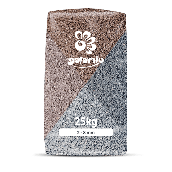 Natürlicher Lavamulch Farbmix von GALAMIO® ist ein hochwertiges Naturprodukt aus der Eifelregion. Das Pflanzgranulat besteht aus erkalteter, erstarrter Lava, wird in der gewünschten Körnung gesiebt und sauber abgefüllt – völlig frei von Zusätzen. In der feinen Körnung von 2-8 mm ist der Lavamulch geruchlos, langlebig und verrottet nicht. Seine poröse Struktur lüftet den Boden, schützt vor Staunässe und speichert Wasser, das bei Trockenheit langsam abgegeben wird. Dadurch bleibt der Boden optimal belüftet, temperaturausgeglichen und geschützt – im Sommer vor Austrocknung und im Winter vor Frost. Der Farbmix und die formstabile Beschaffenheit machen Lavamulch zu einem dekorativen Hingucker. Als Deckschicht unterdrückt er Unkraut, indem er das Eindringen von Licht verhindert. Dies reduziert den Pflegeaufwand und minimiert das Gießen an heißen Tagen. Auch für den Teichbau eignet sich Lavamulch hervorragend: Er filtert Wasser, fördert nützliche Bakterien und schafft eine gesunde Umgebung für Pflanzen. In der Aquaristik unterstützt er das Wurzelwachstum und bietet Mikroorganismen eine ideale Grundlage. Dank seiner Hitzebeständigkeit ist Lavamulch ebenfalls perfekt für Feuerstellen geeignet, da er Wärme speichert und eine angenehme Atmosphäre schafft. Ob für Beete, Wege, Steingärten oder Teiche – Lavamulch überzeugt durch Vielseitigkeit und Funktionalität. Bestellen Sie die GALAMIO® Lavamulch ganz bequem und erhalten Sie die Ware direkt nach Hause geliefert. Die Lieferung erfolgt in praktischen 25-Kilo-Säcken, die ordentlich auf einer Palette gestapelt sind und per Spedition zuverlässig ankommen. Je nach Bedarf können Sie zwischen 12 oder 40 Säcken pro Palette wählen. ACHTUNG! Bei diesem Produkt findet keine Farbsortierung im Vorfeld statt. In einer Lieferung kann Lavamulch in den Farben Rotbraun, Hellgrau, Beige oder Anthrazit vorhanden sein.