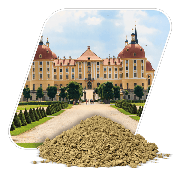 Die Sächsische Wegedecke Deckschicht in Gelb, speziell für wassergebundene Wege konzipiert. Dieses Produkt ist Teil eines Systems, das sowohl eine dynamische Schicht als auch eine Deckschicht umfasst, und soll eine hohe Haltbarkeit sowie eine Selbstregeneration bei Oberflächenschäden bieten. Es wird in öffentlichen Parks und Gärten in ganz Mitteldeutschland eingesetzt.