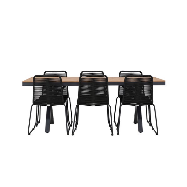 GarciaLindos Gartenset 1 Esstisch, 6 Stühle schwarz. 100 X 200 X 74 cm