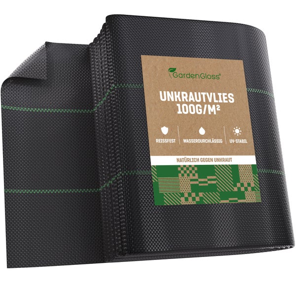 GardenGloss 30m² Anti-Unkrautgewebe 100g/m² – Wasserdurchlässig und Reissfest – Unkrautvlies Gartenvlies mit hoher UV-Stabilisierung – Bändchengewebe Unkrautfolie (15m x 2m, gefaltet)
