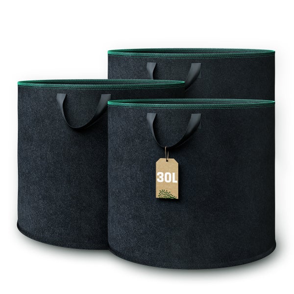 GardenGloss® Pflanzsack (3 Stück) - 30L Pflanztasche aus Vliesstoff - Pflanzentasche für Kartoffeln, Tomaten und Erdbeeren - Farbe Schwarz - Verwendung im Innen- und Außenbereich