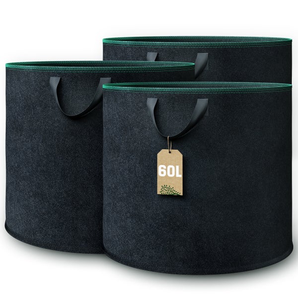 GardenGloss Pflanzsack (3 Stück) - 60L Pflanztasche aus Vliesstoff - Pflanzentasche für Kartoffeln, Tomaten und Erdbeeren - Farbe Schwarz - Verwendung im Innen- und Außenbereich