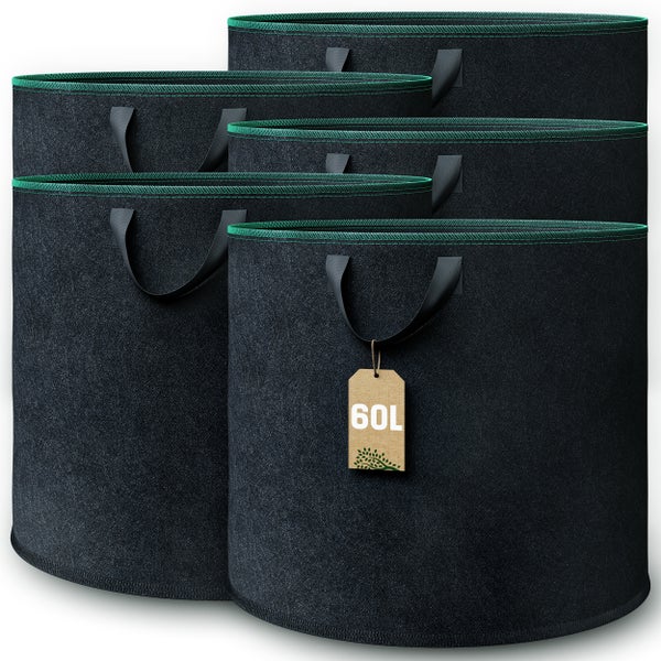 GardenGloss® Pflanzsack (5 Stück) - 60L Pflanztasche aus Vliesstoff - Pflanzentasche für Kartoffeln, Tomaten und Erdbeeren - Farbe Schwarz - Verwendung im Innen- und Außenbereich