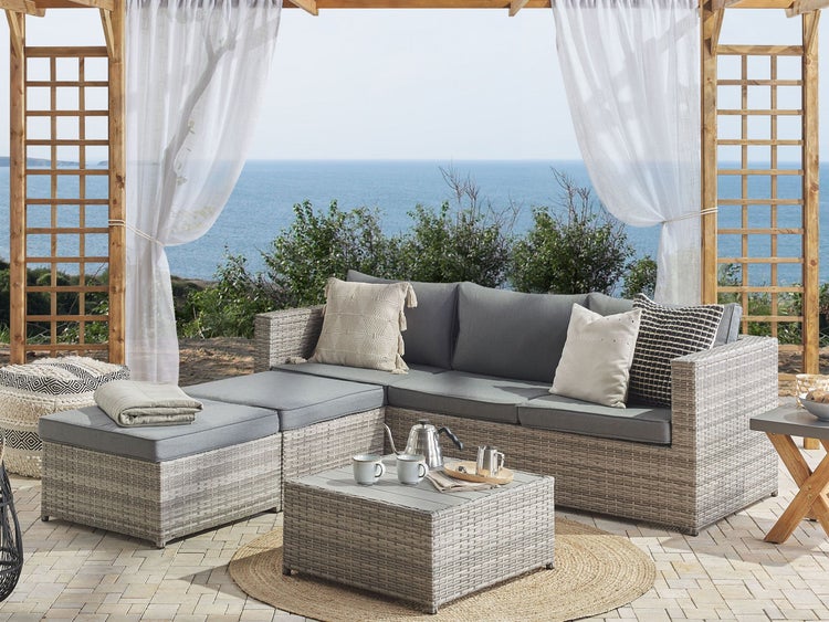 Garten Ecksofa mit Tisch 5-Sitzer SABBIA linksseitig modular Polyrattan Hellgrau