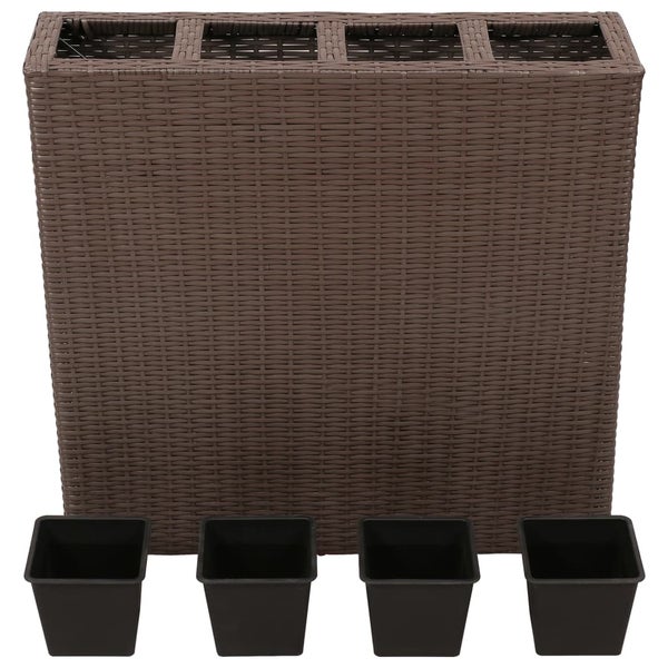 Garten-Hochbeet mit 4 Töpfen Poly Rattan Braun