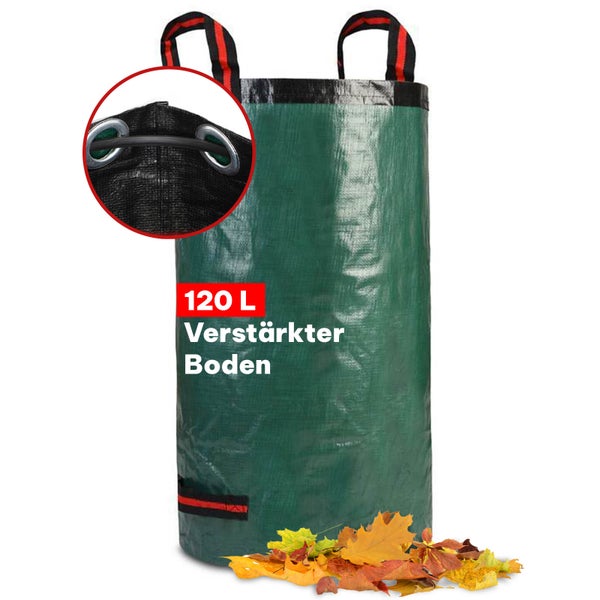 Gartenabfallsack PROFI - 210g/m² - 120 Liter - reißfester Laubsack mit verstärktem Boden & umlaufendem Gurt