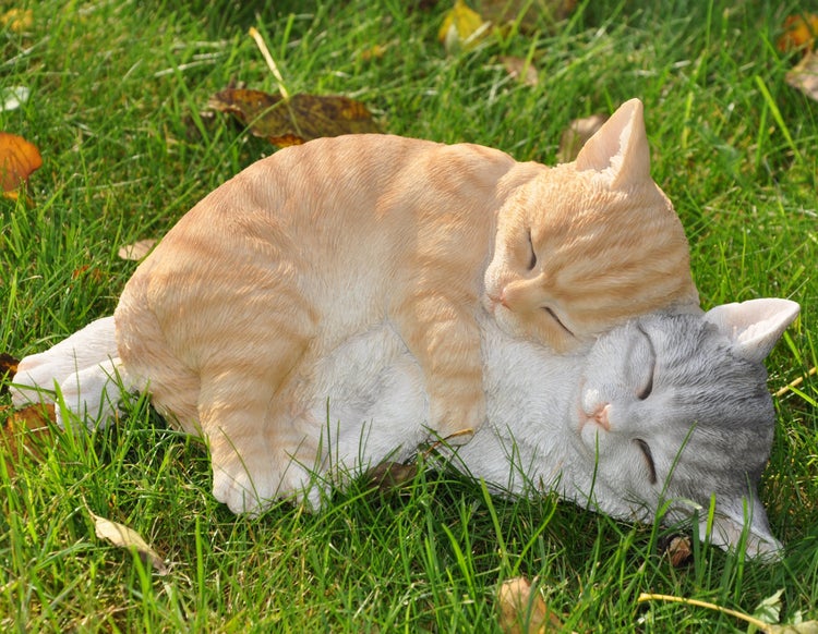 Gartenfigur Dekofigur Zwei schlafende Katzen