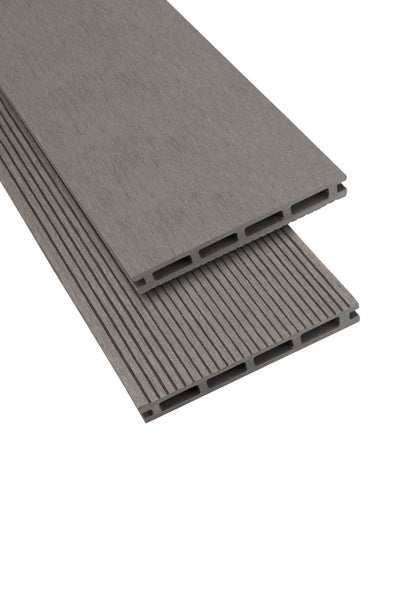 GartenLand WPC Terrassendiele Classic 21 x 140 x 3000 mm Silbergrau Geriffelt und Glatt Hohlkammer