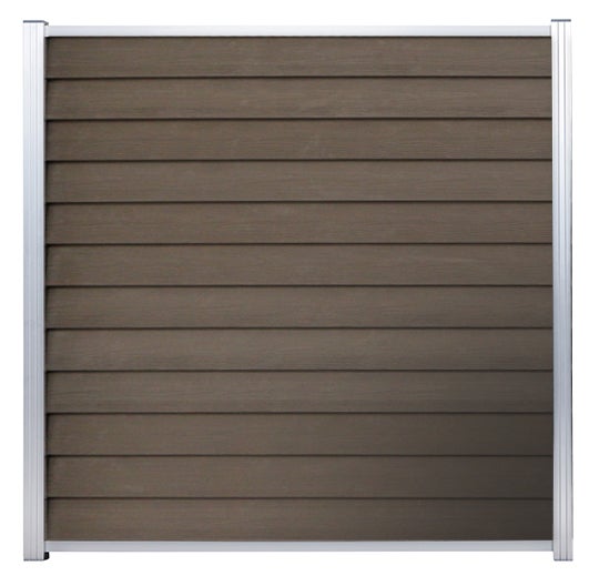 GartenLand WPC Zaun Schwedenprofil ca. 180 x 180 cm Sichtschutz Steckzaun Braun Holzstruktur Aluminium Silber Ohne Pfosten