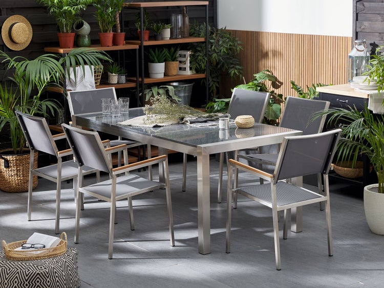 Gartenmöbel Set 6-Sitzer GROSSETO Dreifachplatte Granit Polierter Grau