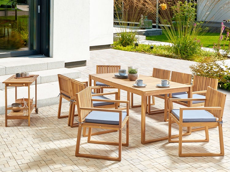 Gartenmöbel Set 8-Sitzer SASSARI II inkl. Kissen zertifiziertes Akazienholz Blau