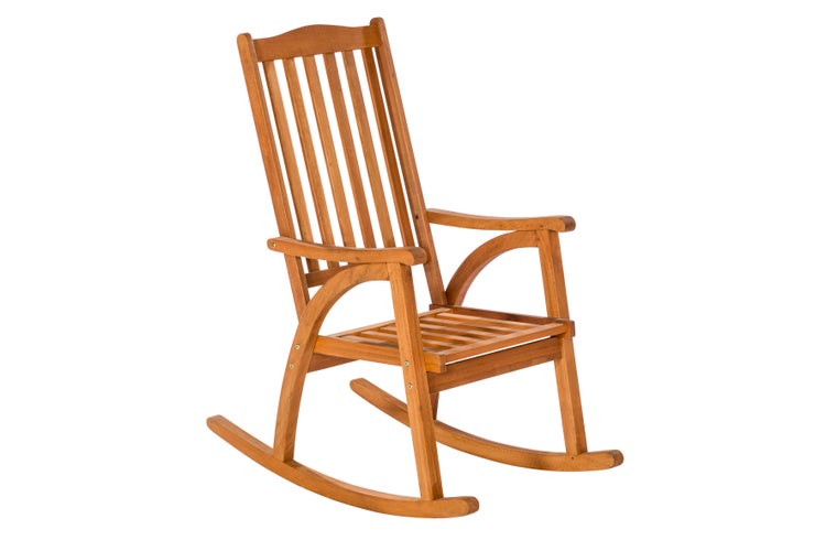 Der Schaukelstuhl besteht aus geöltem Eukalyptusholz. Für eine bessere Haltbarkeit sind die Schrauben galvanisiert.