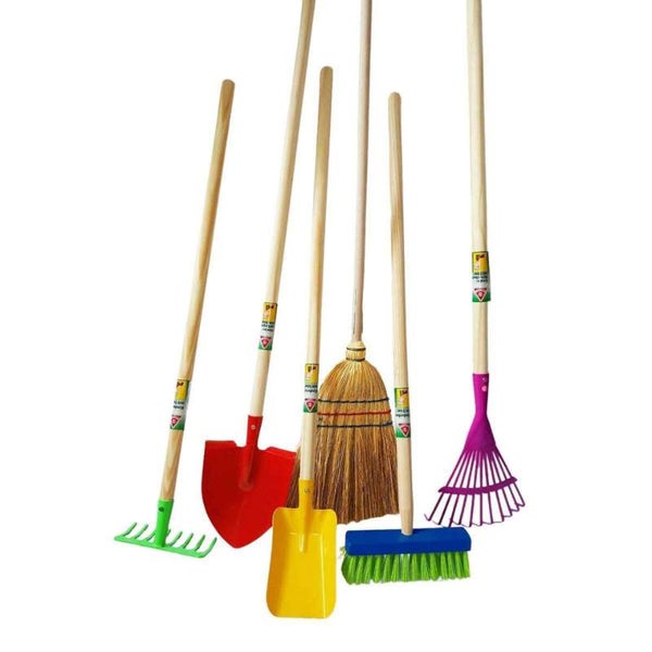 Das 6-teilige Gartenset ist für Kinder ab drei Jahren geeignet, die ihre Zeit gerne im Sandkasten oder Garten verbringen. Die Geräteköpfe sind aus pulverbeschichtetem Metall. Der Kopf des Besens aus Buchenholz.Alle Gartengeräte haben einen Holzstiel, der 76 cm lang ist. Alle Kindergeräte im Set sind vormontiert und direkt einsatzbereit.