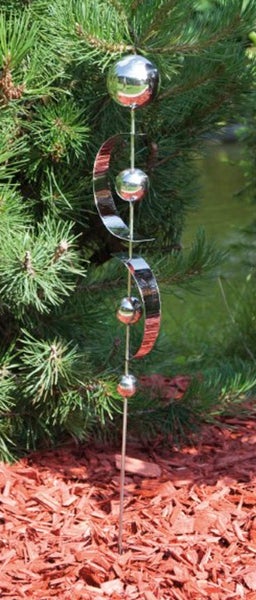 Verleihen Sie Ihrem Balkon, Ihrer Terrasse und Ihrem Garten einen romantischen und edlen Charme mit diesem stilvollen Gartenstecker aus wetterbeständigem, rostfreiem Edelstahl. Die vier schwebenden Edelstahlkugeln schaffen einen faszinierenden visuellen Kontrast zur Bepflanzung in Ihrem Garten und reflektieren das Sonnenlicht für zauberhafte Glitzereffekte.