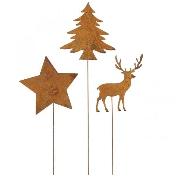 Gartenstecker Edelrost Hirsch Stern Tanne Set Winterdeko Weihnachten 3er-Set 10/15cm, 3 Stück