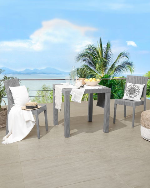 - ArtikelvorteilModerne Terrassen- und Gartenmöbel, Leichtes und zugleich strapazierfähiges Material, UV-Beständigkeit, Witterungsbeständiges und schmutzabweisendes Material, Besonders pflegeleicht, Platzsparend stapelbar