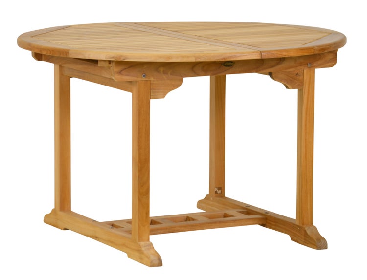 Dieser runde Teakholz Gartentisch mit Auszug ist außergewöhnlich robust und bietet eine sehr hohe Wetterfestigkeit, sodass er sich ganzjährig für alle Gärten, Terrassen, Wintergärten und Balkone eignet. Der verlängerbare Teaktisch besticht durch sein zeitloses Design und ist durch eine Querverbindung am Fuß außergewöhnlich stabil konstruiert. Durch die integrierte Zusatzplatte ist er flexibel nutzbar und bietet bequem Platz für 6-8 Personen. Die Zusatzplatte lässt sich leicht ausklappen und durch eine einfache Drehbewegung wieder unter der Tischplatte versenken, sodass sie nicht separat verstaut werden muss. Der Teak Tische zum Ausziehen wird fertig montiert geliefert.Wir empfehlen, den Outdoor Ausziehtisch aus Teak mit Stühlen der Firma Kai Wiechmann zu kombinieren.