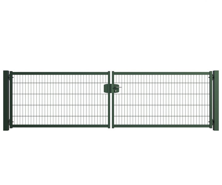 Gartentor ZAUNGURU BASIC-Line Berlin aus Metall, Höhe: 103cm, Breite: 388cm, 2-flügelig inkl. Pfosten, Schloss und Zubehör, Feuerverzinkt und zusätzlich in RAL 6005 Moosgrün pulverbeschichtet