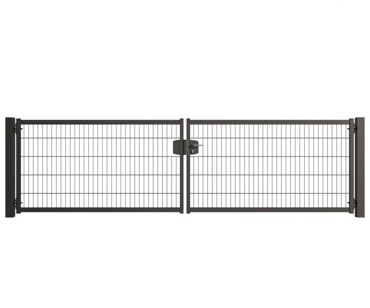 Gartentor ZAUNGURU BASIC-Line Berlin aus Metall, Höhe: 103cm, Breite: 388cm, 2-flügelig inkl. Pfosten, Schloss und Zubehör, Feuerverzinkt und zusätzlich in RAL 7016 Anthrazitgrau pulverbeschichtet