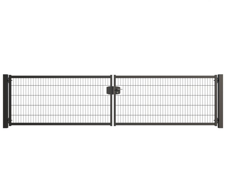 Gartentor ZAUNGURU BASIC-Line Berlin aus Metall, Höhe: 103cm, Breite: 441cm, 2-flügelig inkl. Pfosten, Schloss und Zubehör, Feuerverzinkt und zusätzlich in RAL 7016 Anthrazitgrau pulverbeschichtet