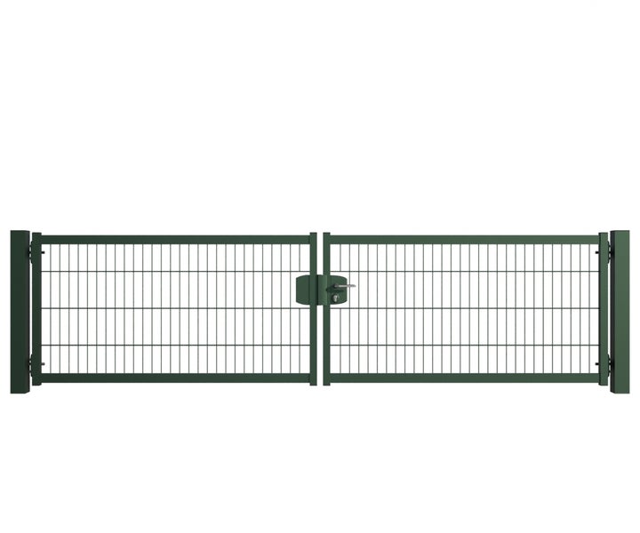 Gartentor ZAUNGURU BASIC-Line Berlin aus Metall, Höhe: 83cm, Breite: 334cm, 2-flügelig inkl. Pfosten, Schloss und Zubehör, Feuerverzinkt und zusätzlich in RAL 6005 Moosgrün pulverbeschichtet