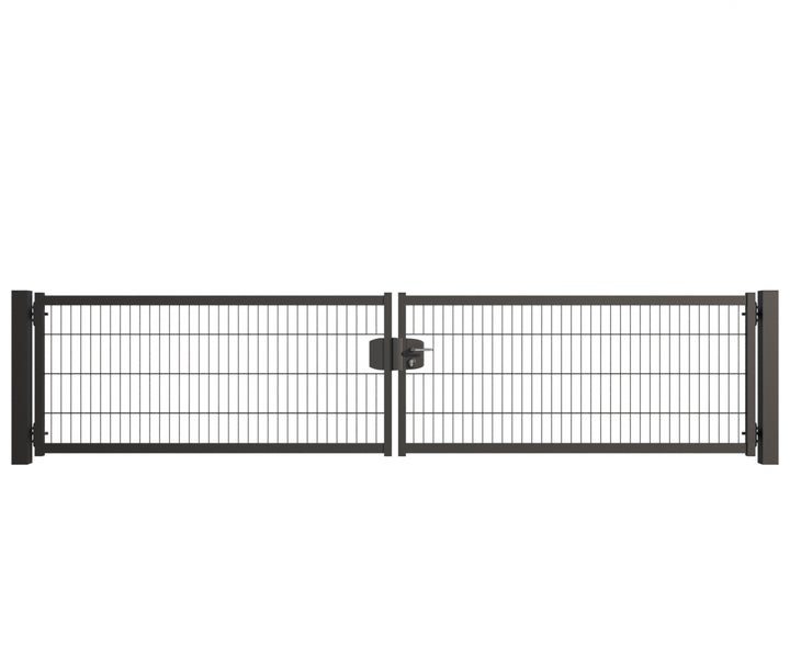 Gartentor ZAUNGURU BASIC-Line Berlin aus Metall, Höhe: 83cm, Breite: 388cm, 2-flügelig inkl. Pfosten, Schloss und Zubehör, Feuerverzinkt und zusätzlich in RAL 7016 Anthrazitgrau pulverbeschichtet
