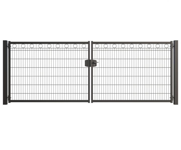Gartentor ZAUNGURU BASIC-Line Berlin Kreis aus Metall, Höhe: 143cm, Breite: 401cm, 2-flügelig inkl. Pfosten, Schloss und Zubehör, Feuerverzinkt und in RAL 7016 Anthrazitgrau pulverbeschichtet