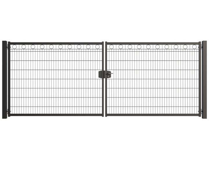 Gartentor ZAUNGURU BASIC-Line Berlin Kreis aus Metall, Höhe: 163cm, Breite: 441cm, 2-flügelig inkl. Pfosten, Schloss und Zubehör, Feuerverzinkt und in RAL 7016 Anthrazitgrau pulverbeschichtet