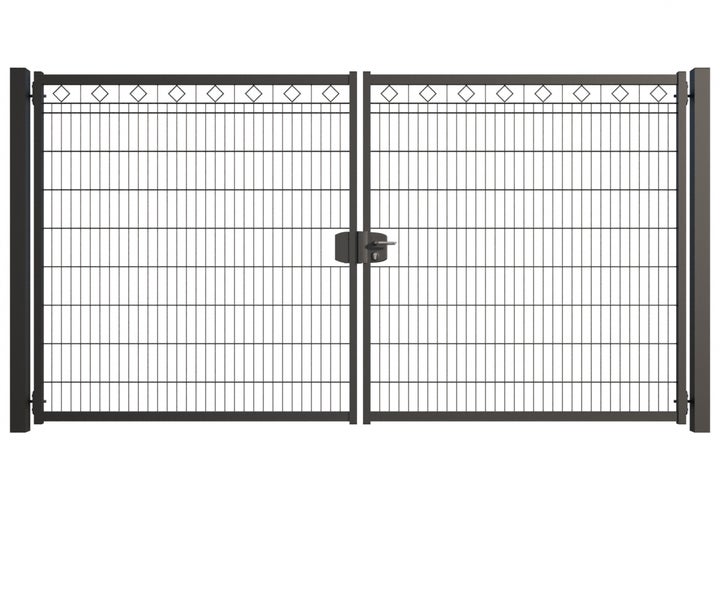 Gartentor ZAUNGURU BASIC-Line Berlin Raute aus Metall, Höhe: 183cm, Breite: 361cm, 2-flügelig inkl. Pfosten, Schloss und Zubehör, Feuerverzinkt und in RAL 7016 Anthrazitgrau pulverbeschichtet